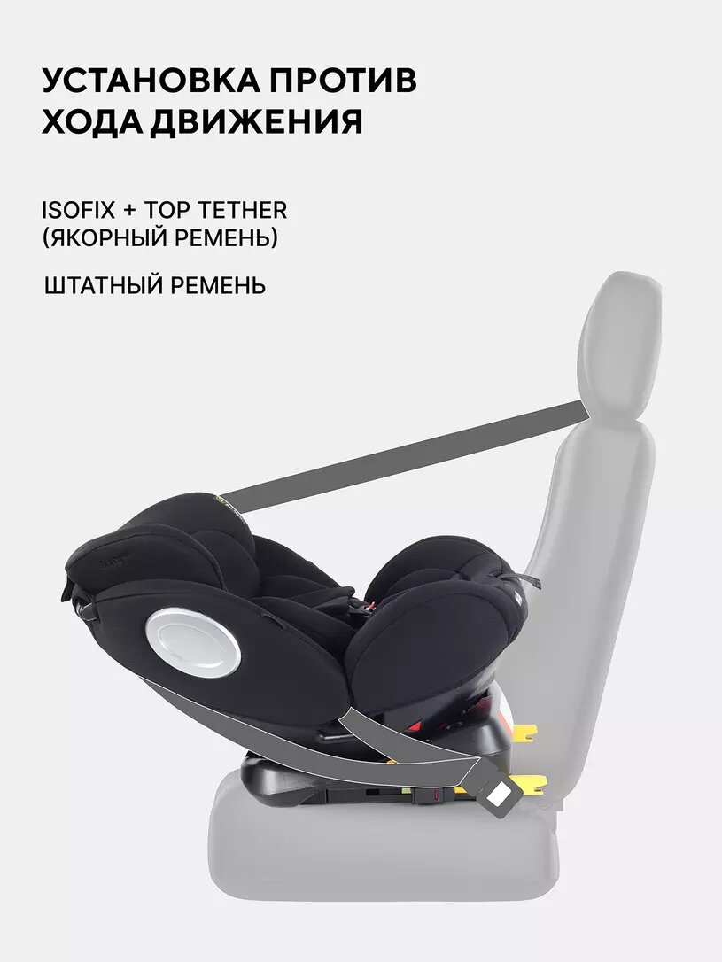 — Поворотная база на 360° — главное преимущество кресла. Благодаря системе ISOFIX и Top Tether , кресло легко фиксируется в автомобиле и плавно поворачивается в любом направлении. Теперь посадить малыша стало ещё проще: разверните кресло боком, усадите ребёнка, и одним движением выставьте его по ходу или против хода движения.