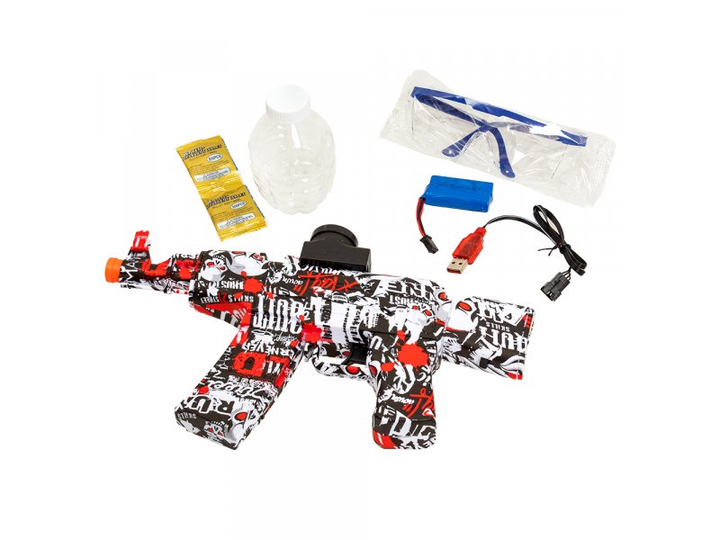 Автоматический бластер YF1706 стреляет гелевыми пулями и оснащён подсветкой. В комплекте аккумулятор, кабель зарядки и запасные боеприпасы.