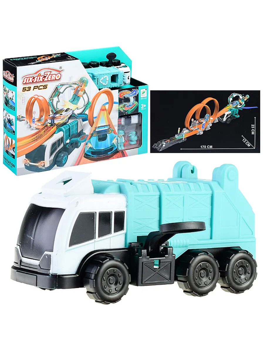 Трек гоночный с гаражом и машинками, в коробке