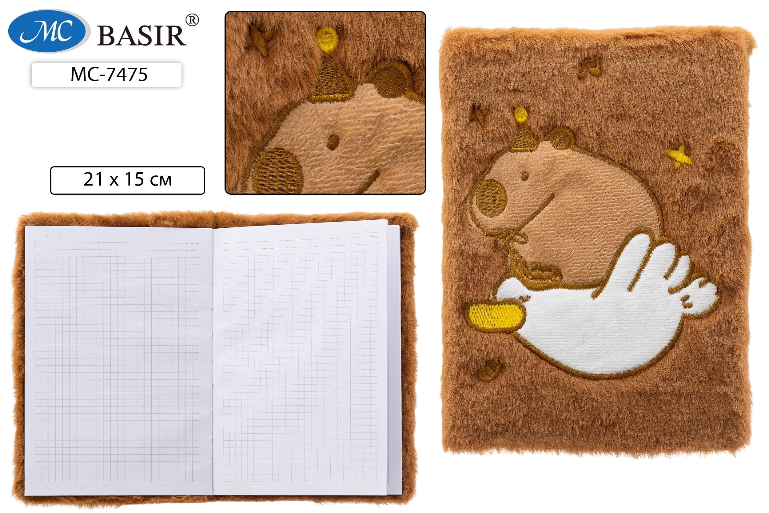 Мягкий блокнот Basir «КАПИБАРА» в меховой коричневой обложке с аппликацией. Приятный на ощупь, идеально подходит для записей и подарка ребёнку.