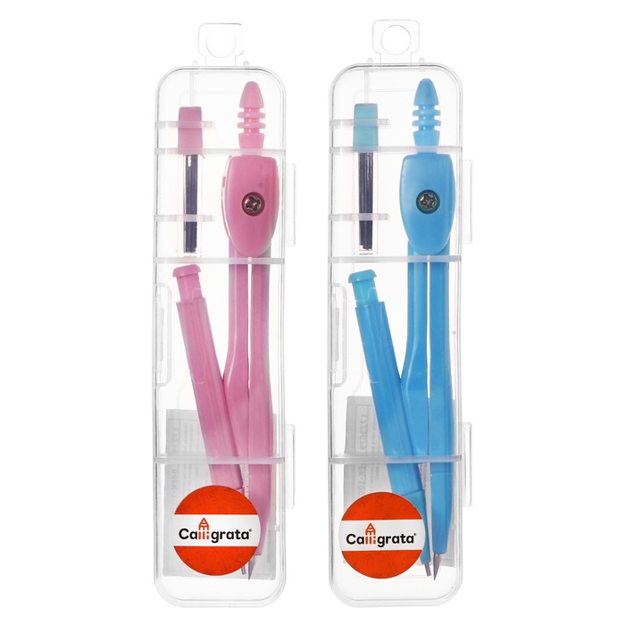 Циркуль металлический 120мм в пластиковом пенале с механическим карандашом+грифели МИКС 1723679