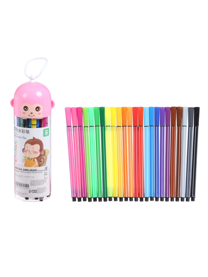Фломастеры 24 цветов, в тубусе, Полоски, розовая Обезьяна 10517914