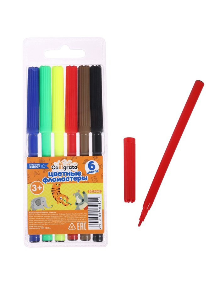 Фломастеры 6 цветов в блистере CALLIGRATA вентилируемый колпачок 1014648