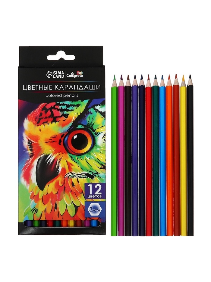 Карандаши 12цв Calligrata TOP, заточен., 3мм, шестригран, картон, европодвес 9904958