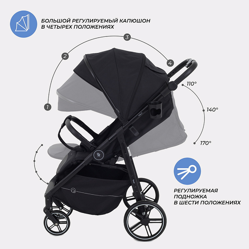 — спинка многопозиционная для активных прогулок и сладкого сна.