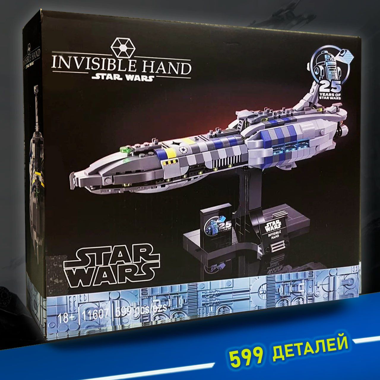 Конструктор «Незримая длань» (Invisible Hand) из серии «Звездные войны» представляет собой уникальный набор для сборки космического боевого крейсера Star Wars. Этот крейсер, набор состоит из 599 деталей, является флагманским кораблем генерала Гривуса и относится к классу авианесущих разрушителей типа «Провидение». Экипаж «Незримой длани» насчитывает 350 человек, а его пассажирская вместимость достигает 1,5 миллиона боевых дроидов. Оригинальный корабль достигал длины более 1 км и был уничтожен возле Корусанта, распавшись на две части при входе в атмосферу планеты.