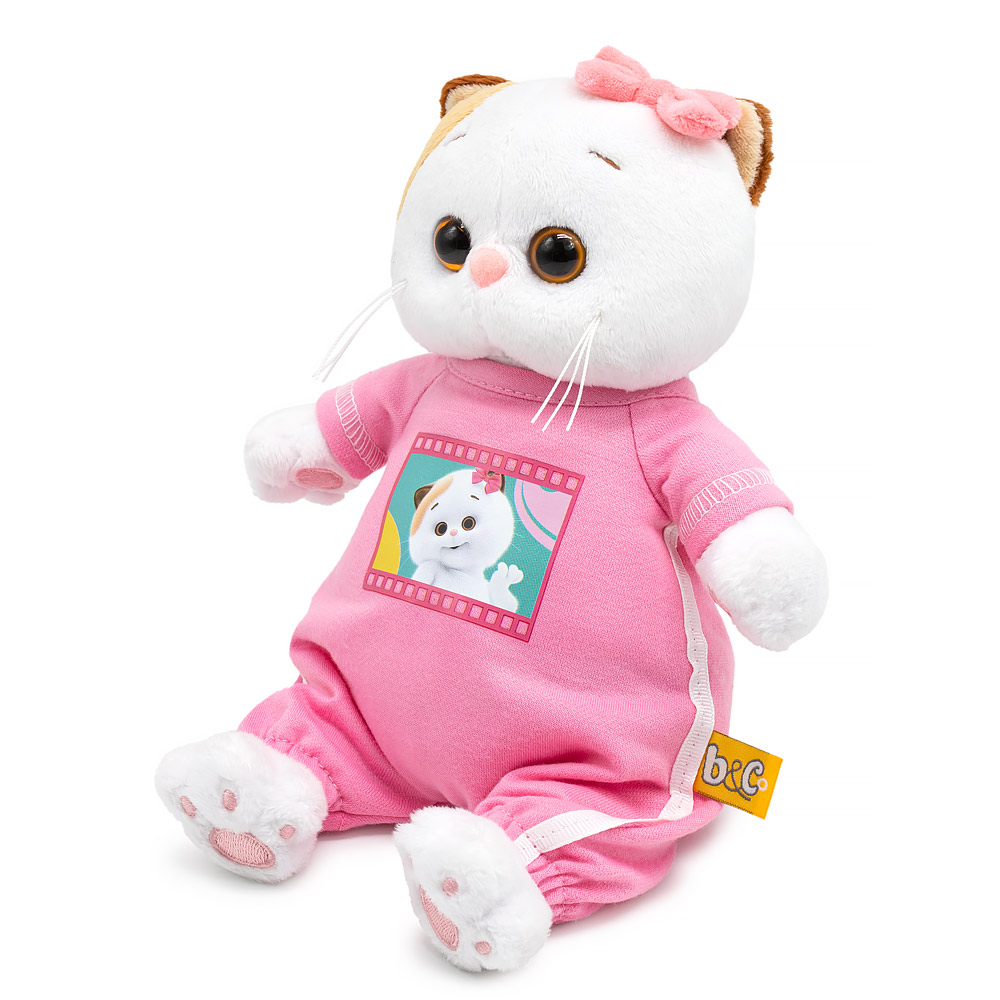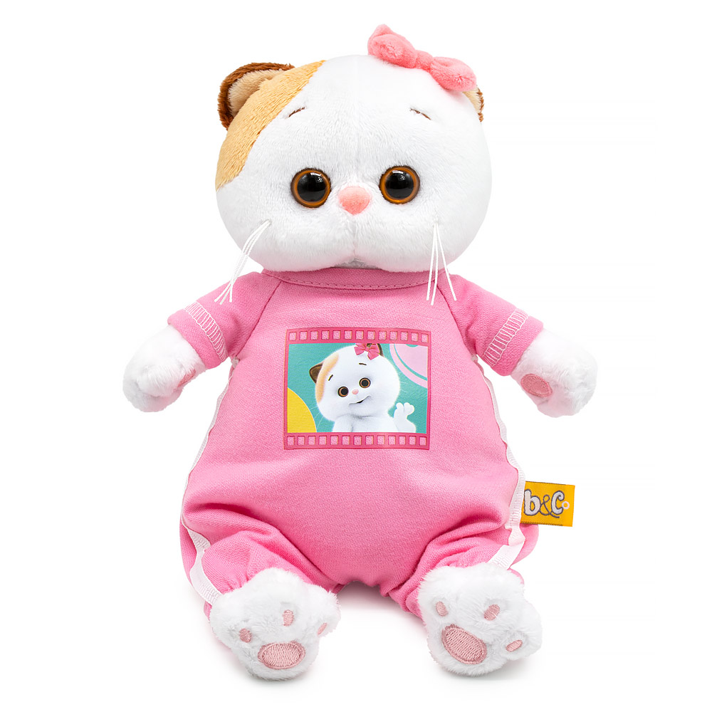 Ли-Ли в розовом комбинезоне из х/б трикотажа с принтом кадра из мультсериала. На ушке Ли-Ли её любимый розовый бантик. Кошечка Ли-Ли представлена в фирменной коробке с дизайном в стиле мультсериала «Кот Басик».