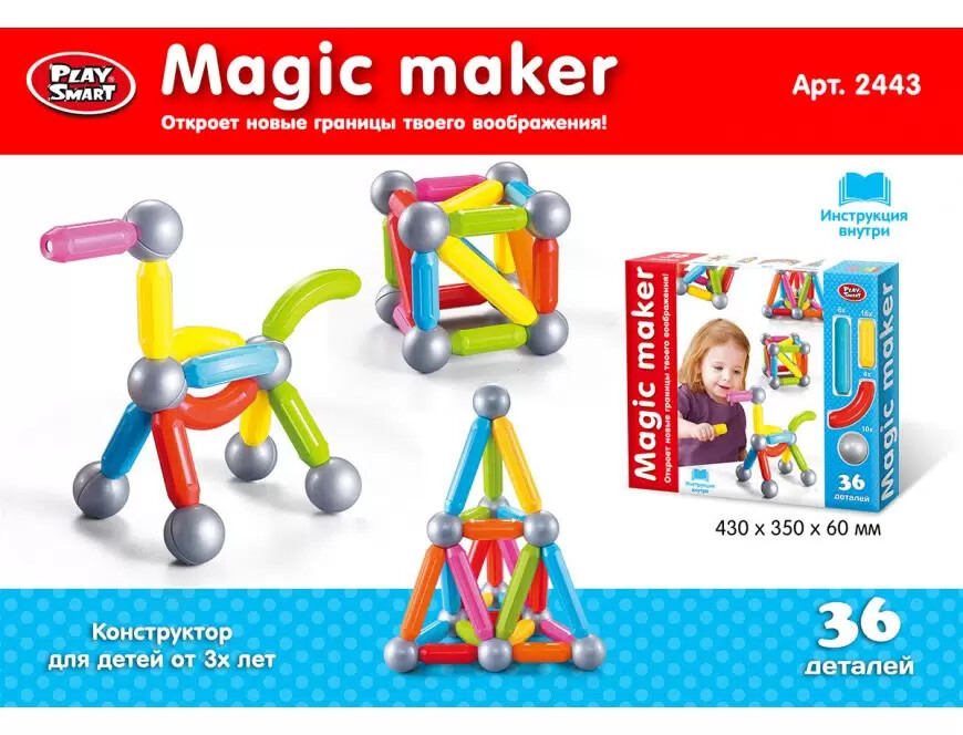 Магнитный конструктор, 36 элементов, арт.2443