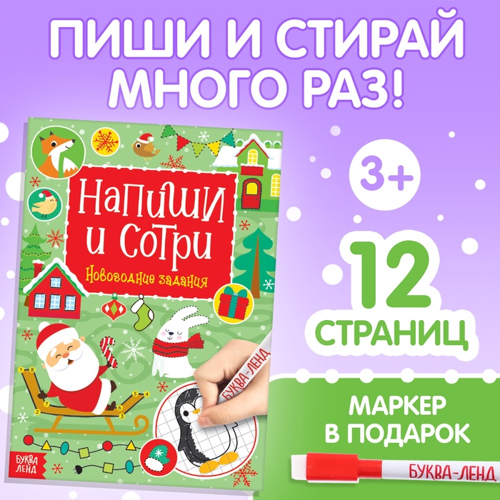 Многоразовая книга с маркером «Напиши и сотри. Новогодние задания», 12 стр. 4985336