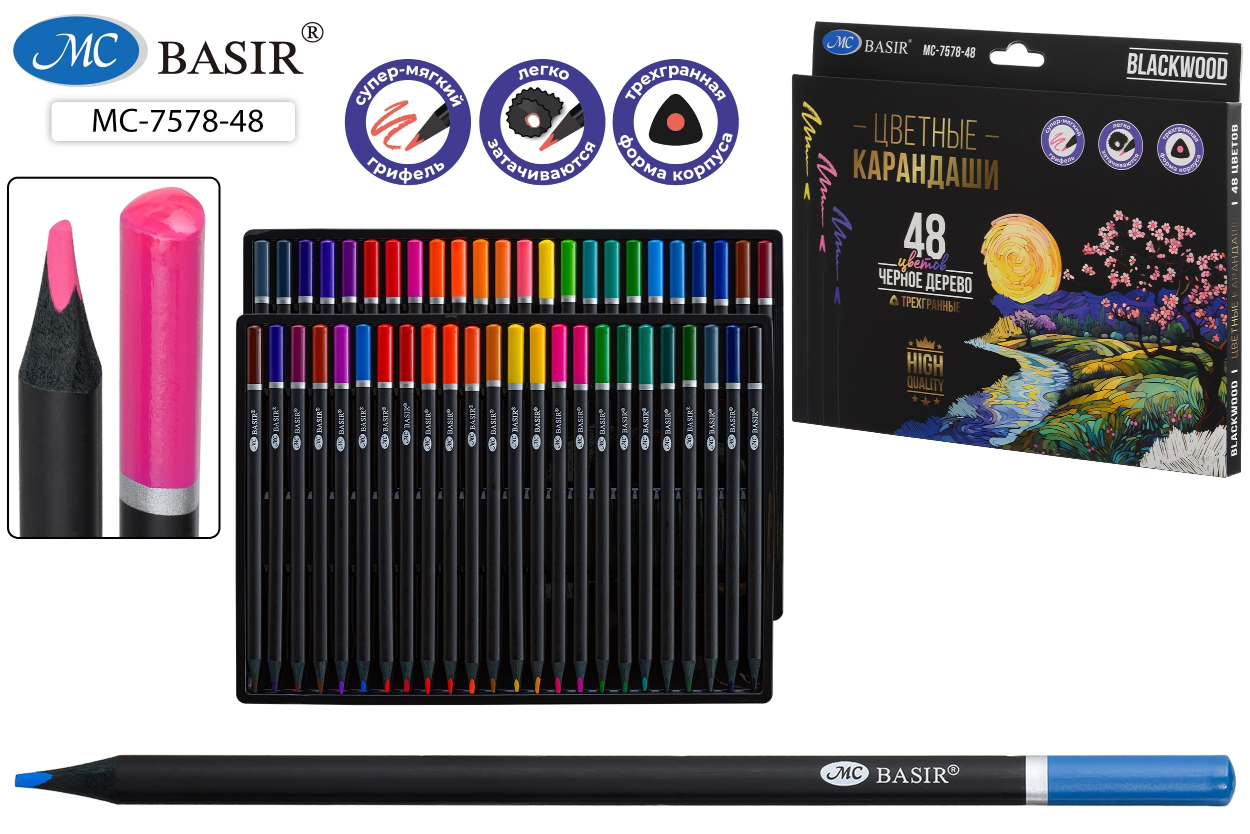 Профессиональный набор цветных карандашей Basir «ПЕЙЗАЖ» — 48 насыщенных оттенков. Изготовлены из чёрного треугольного корпуса, грифель мягкий, отлично подходит для художественного рисования и растушёвки.