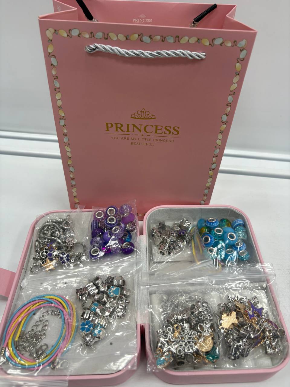 Творческий набор для изготовления браслетов. Включает бусины, шнурки и украшения для фантазийного дизайна.