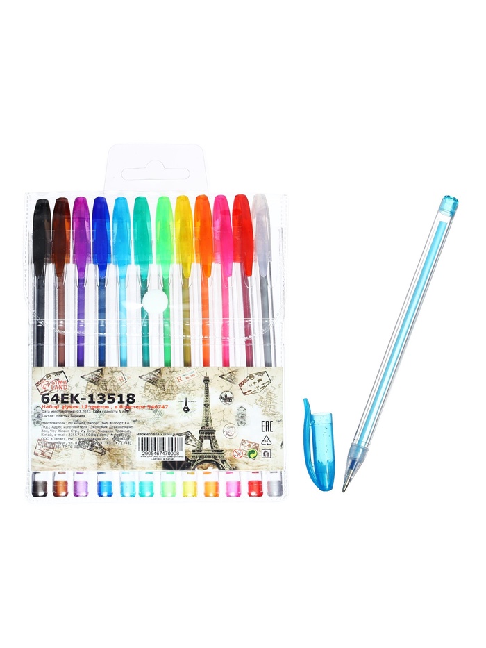 Набор гелевых ручек 12 цветов металлик, в блистере 546747