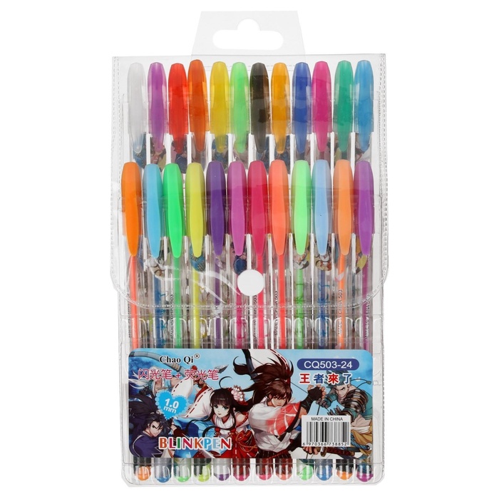 Набор гелевых ручек 24 цвета металлик корпус с рисунком в блистере на кнопке 127754
