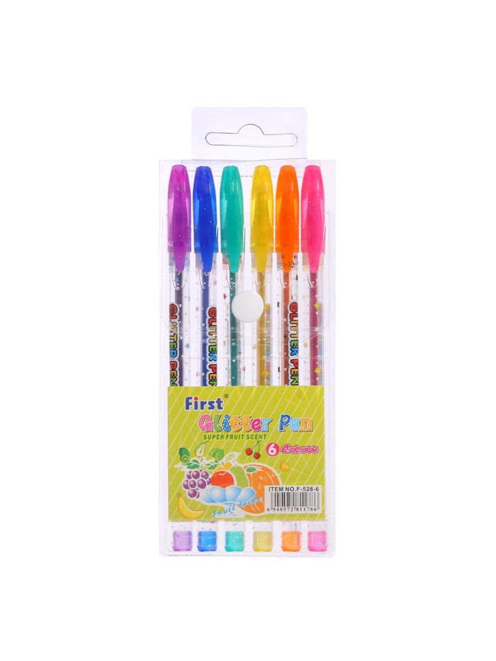 Набор гелевых ручек 6 цветов металлик, корпус с рисунком в блистере на кнопке 893043