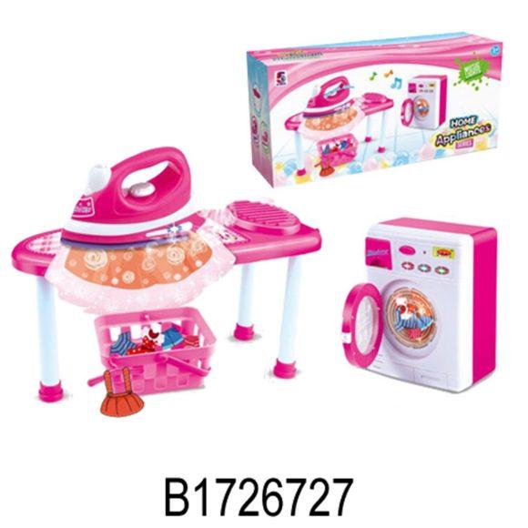 Набор игрушечной бытовой техники понравится каждой маленькой хозяйке, которая любит помогать маме! При включении утюг начнёт воспроизводить весёлую песенку на английском языке и красиво светиться. А если включить стиральную машинку, игрушка будет издавать булькающие звуки, сопровождаемые мерцанием световых индикаторов.