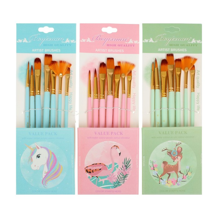 Набор кистей синтетика 7 штук (№3/0,2,4,6,8,10,12), в блистере 7711361