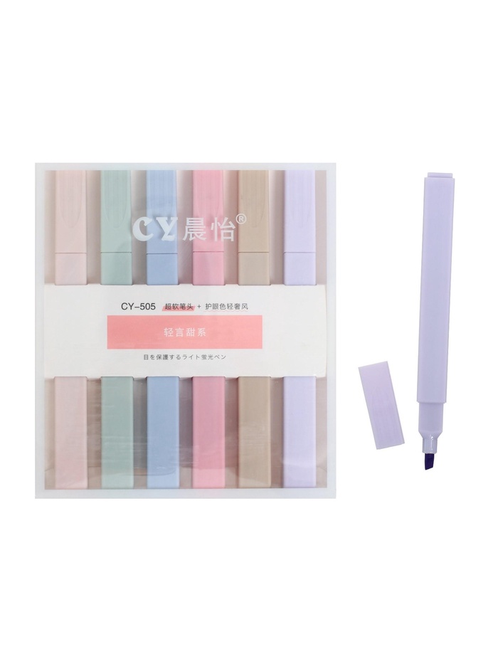 Набор маркеров текстовыделителей 6 цветов Пастельные цвета, корпус квадратный 7070858