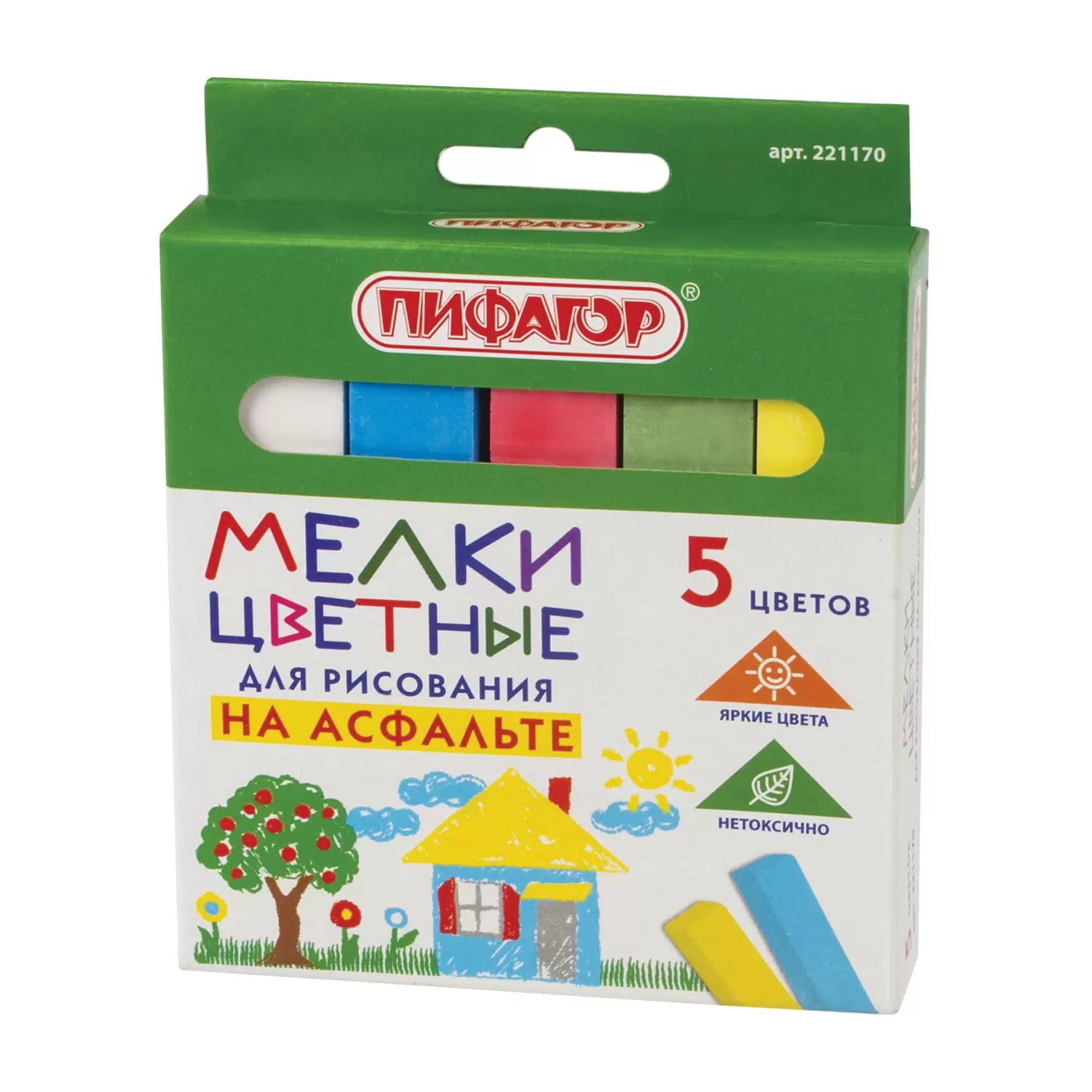 Изготовлен из высококачественного природного сырья, нетоксичен. Благодаря квадратной форме удобно ложится в руку. Легко смывается водой. Длина – 95 мм, диаметр – 17 мм. В наборе 5 мелков. 4 цветных мелка (красный, желтый, зеленый, голубой) и 1 белый мелок. Набор упакован в картонную коробку с европодвесом.