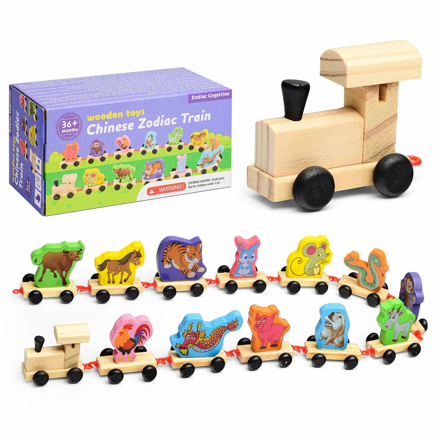 Игровой набор состоит из 13 ярких секций на колесиках: 1 локомотива, и 12 вагончиков с животными.