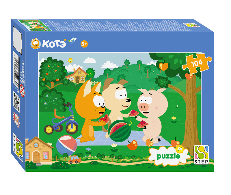 Пазл из 104 деталей — отличный выбор для юных любителей «Котэ». Картинка размером 27×18 см. раскрывается постепенно, развивая воображение, усидчивость и внимательность.