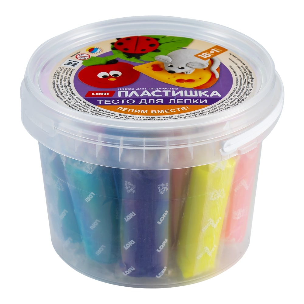 Пластишка. Тесто для лепки 18 цв по 24 гр с формочкой (ведерко с ручкой) (Арт. Тдл-045)