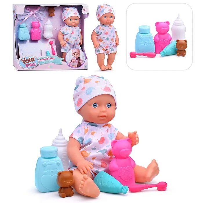 - В комплекте аксессуары: одежда, бутылочка и другие предметы помогут ребёнку погрузиться в увлекательную игру ухода за малышом.