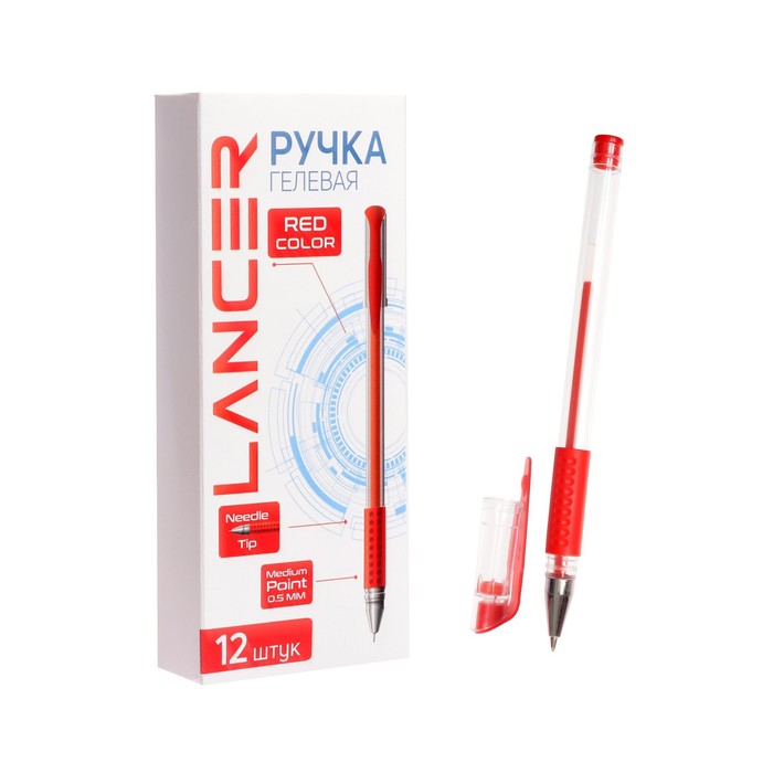 Ручка гелевая 0,5мм красная, корпус прозрачный с резиновым держателем CALLIGRATA 1264120