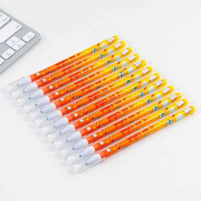 Ручка пластик пиши-стирай с колпачком «Для пятёрок», синяя паста, гелевая 0,5 мм 9227089