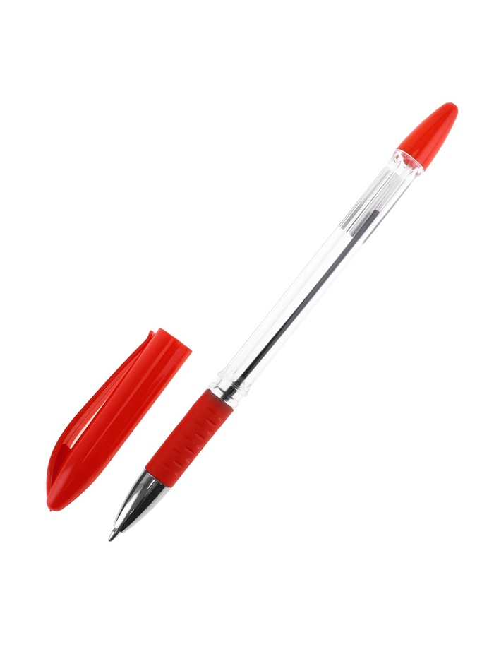 Ручка шариковая 0,5мм красная, корпус прозрачный с резиновым держателем 639242