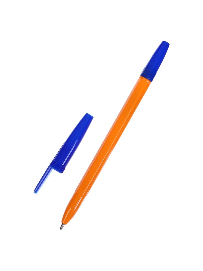 Ручка шариковая 0,7мм синяя, корпус оранжевый с синим колпачком, штрихкод на штуке 5449273