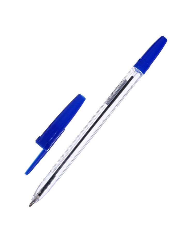 Ручка шариковая 0,7мм стержень синий, корпус прозрачный с синим колпачком, штрихкод на штуке 5449272