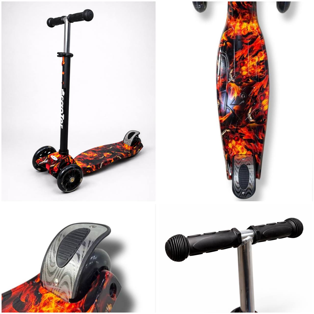 — Резиновые грипсы для надёжного управления самокатом.