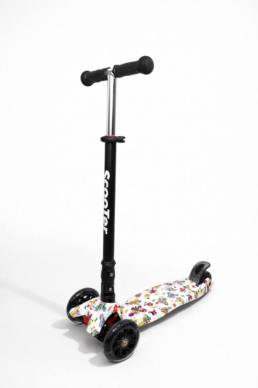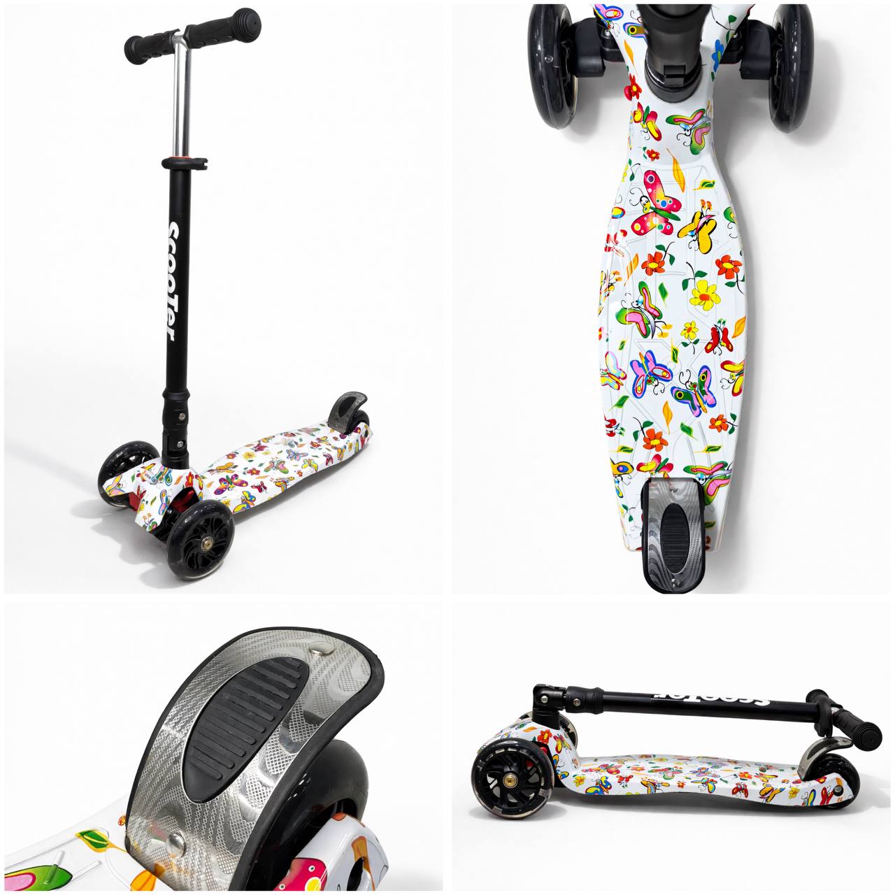 Самокат 3-х колесный складной S00098, принт «Бабочки»