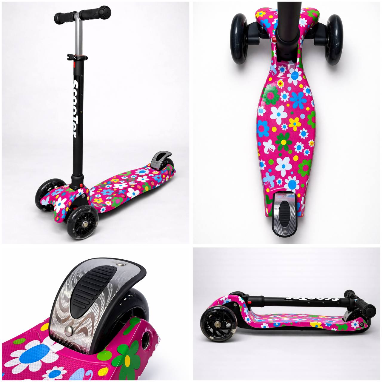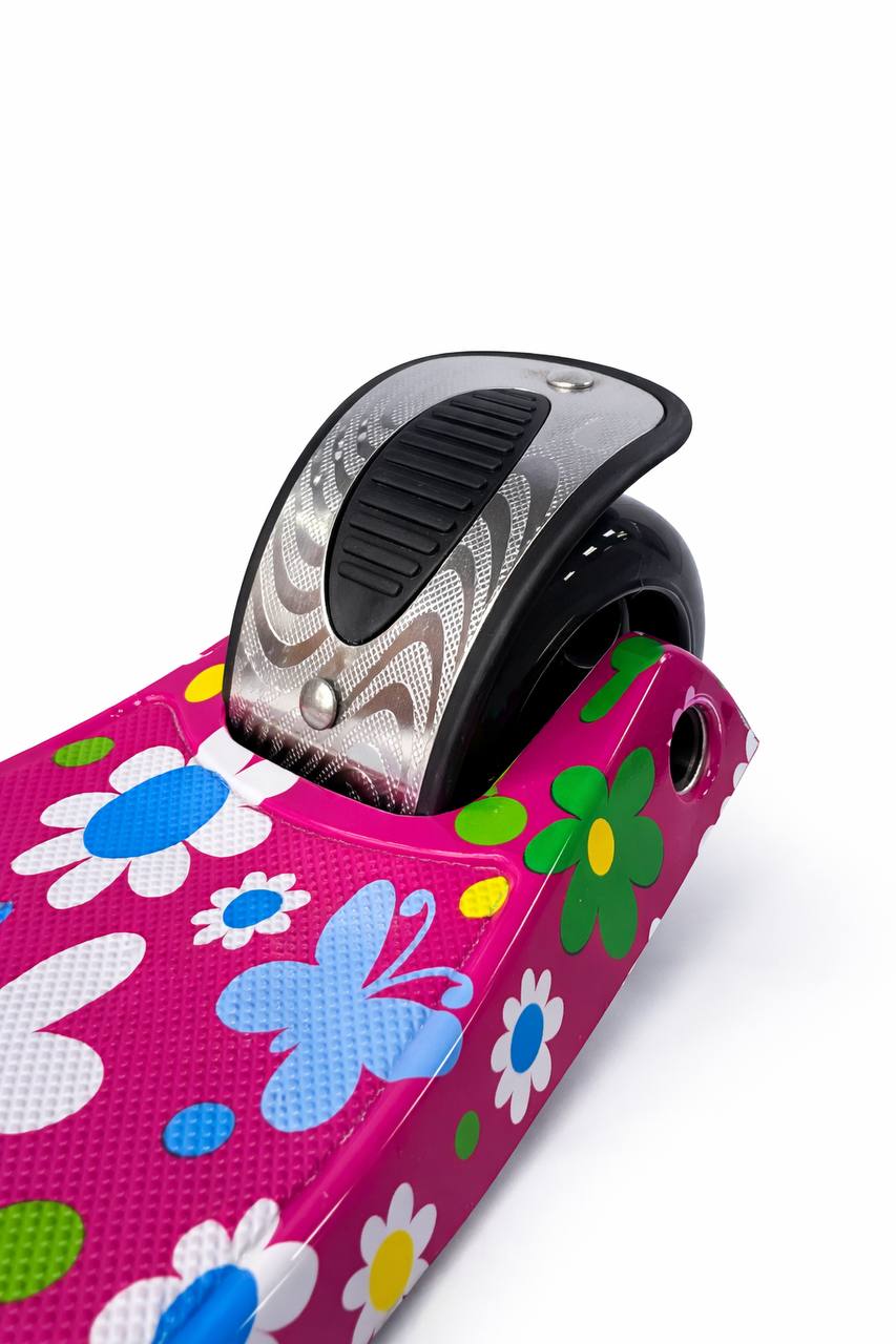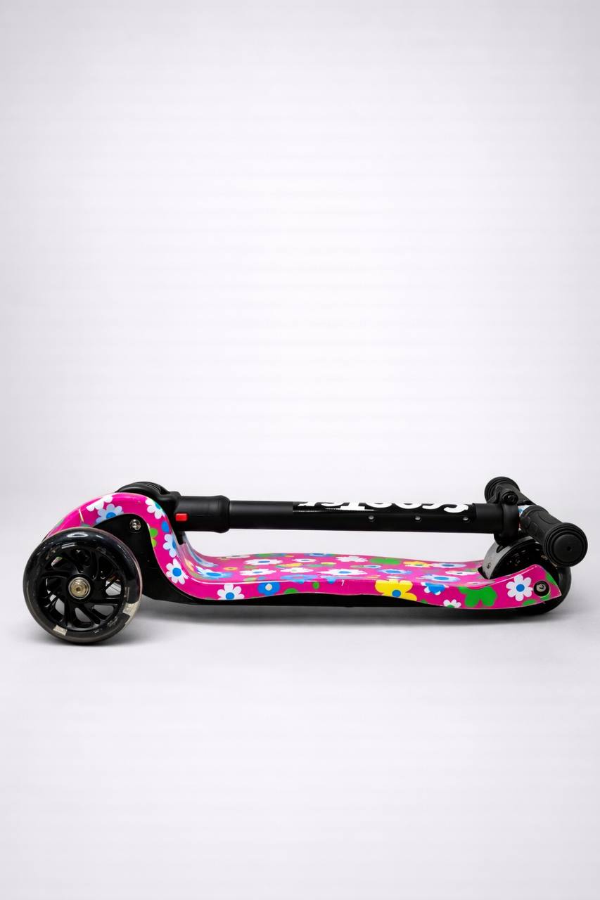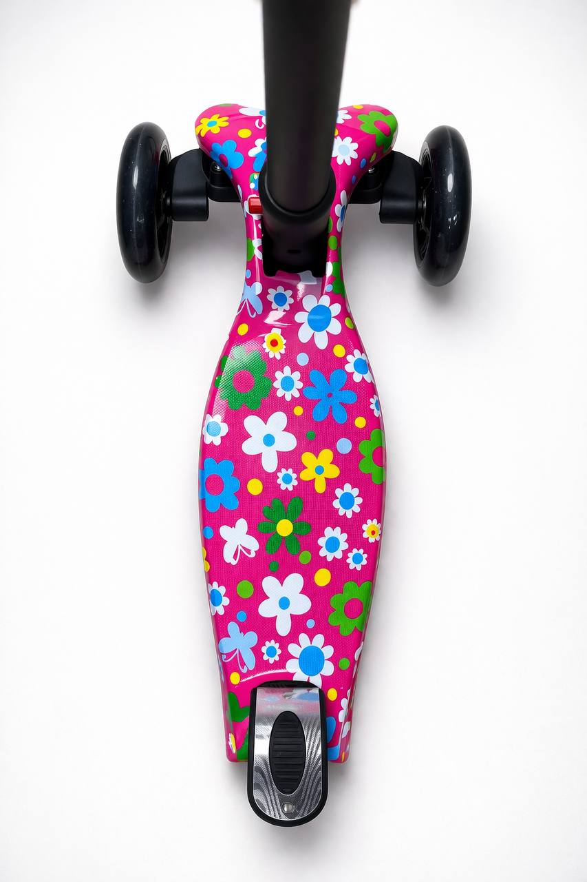 Самокат 3-х колесный складной S00225, принт «Цветы на розовом фоне»