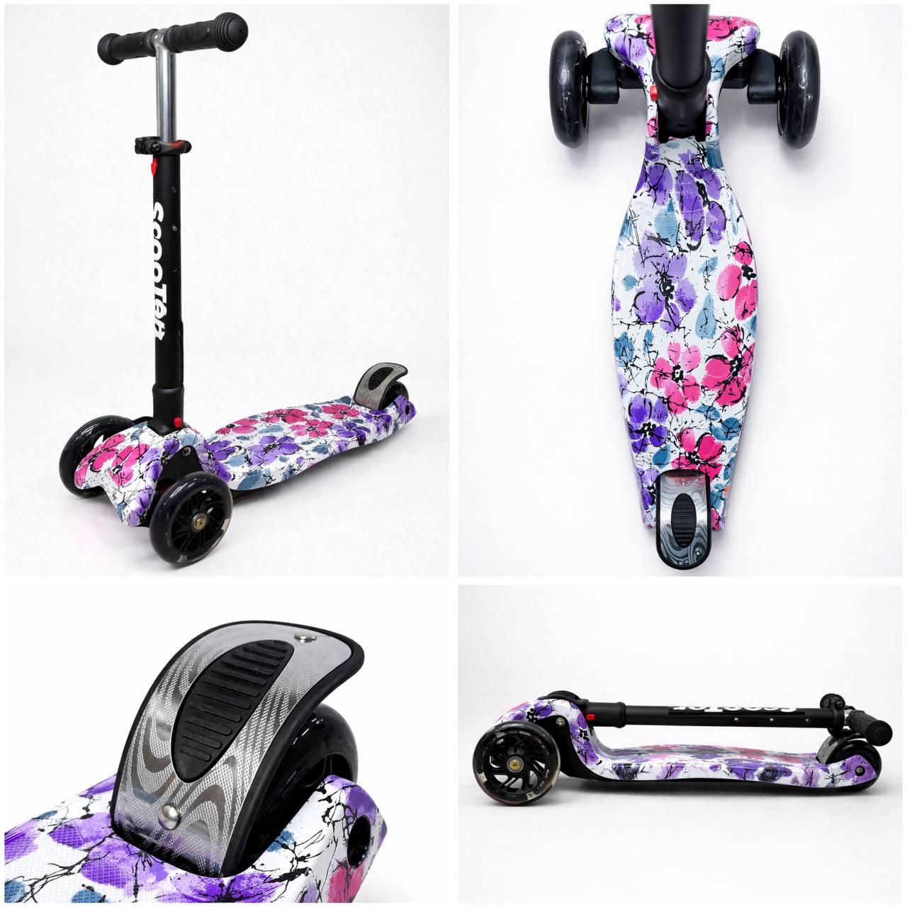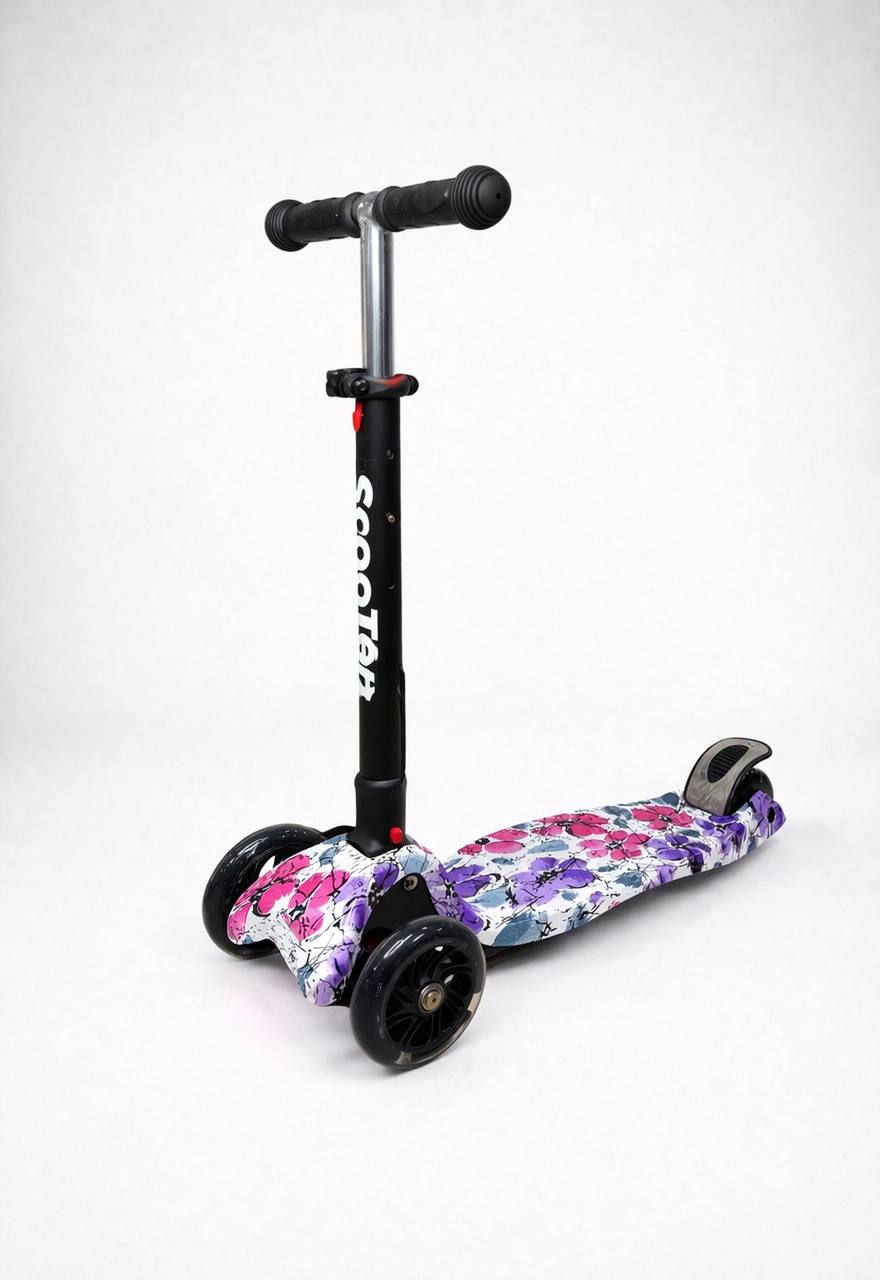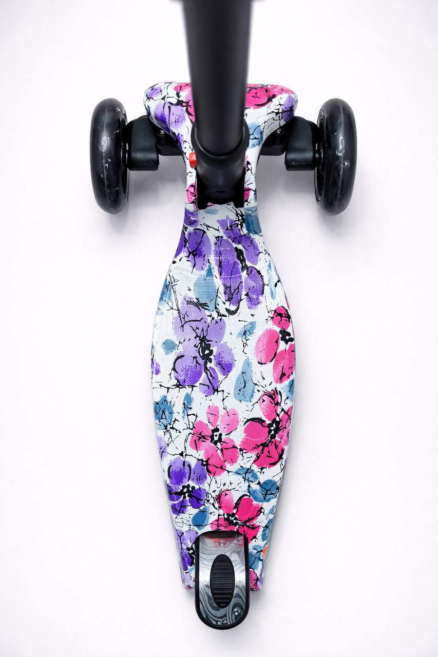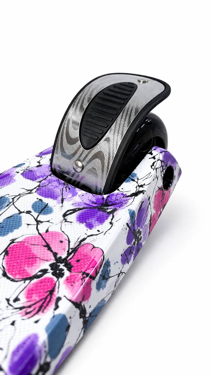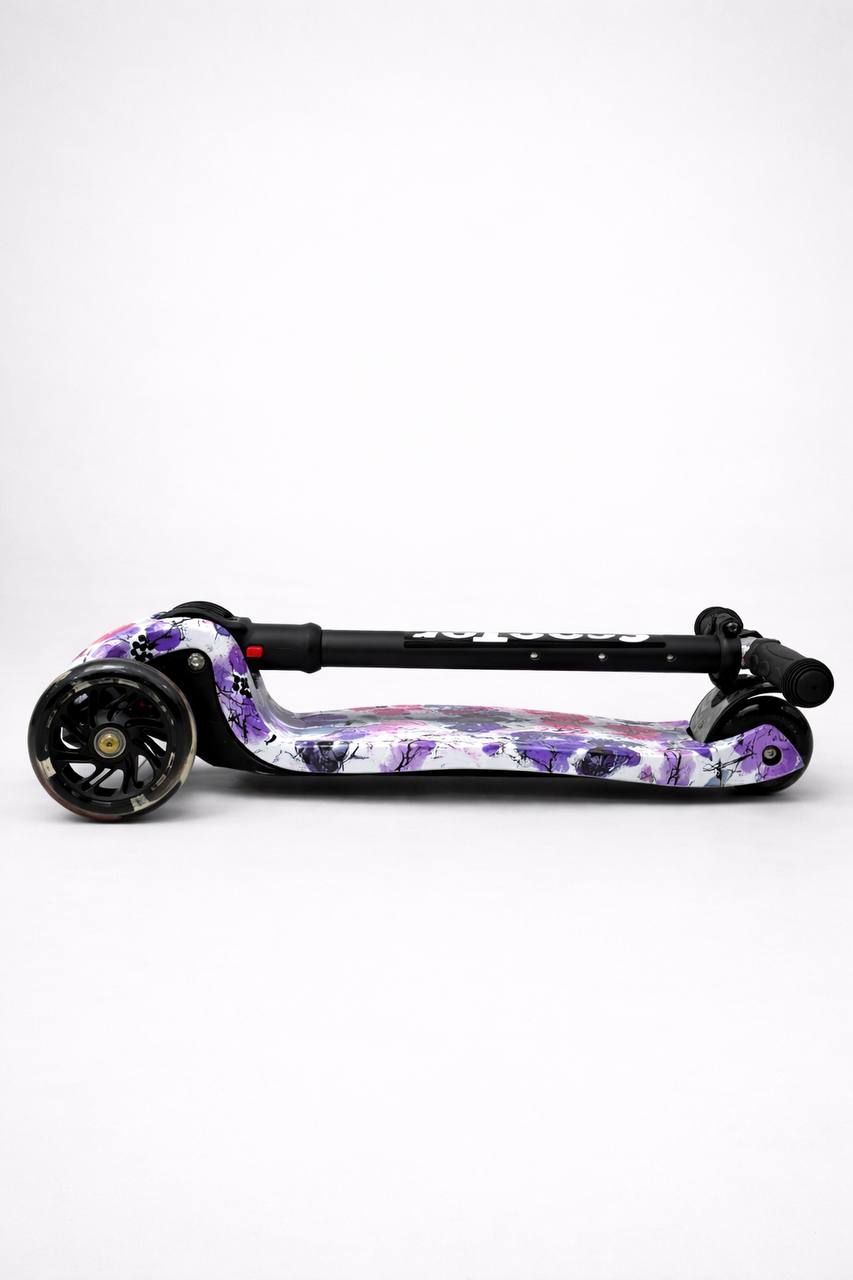 Самокат 3-х колесный складной S00225, принт «Фиолетовые цветы»