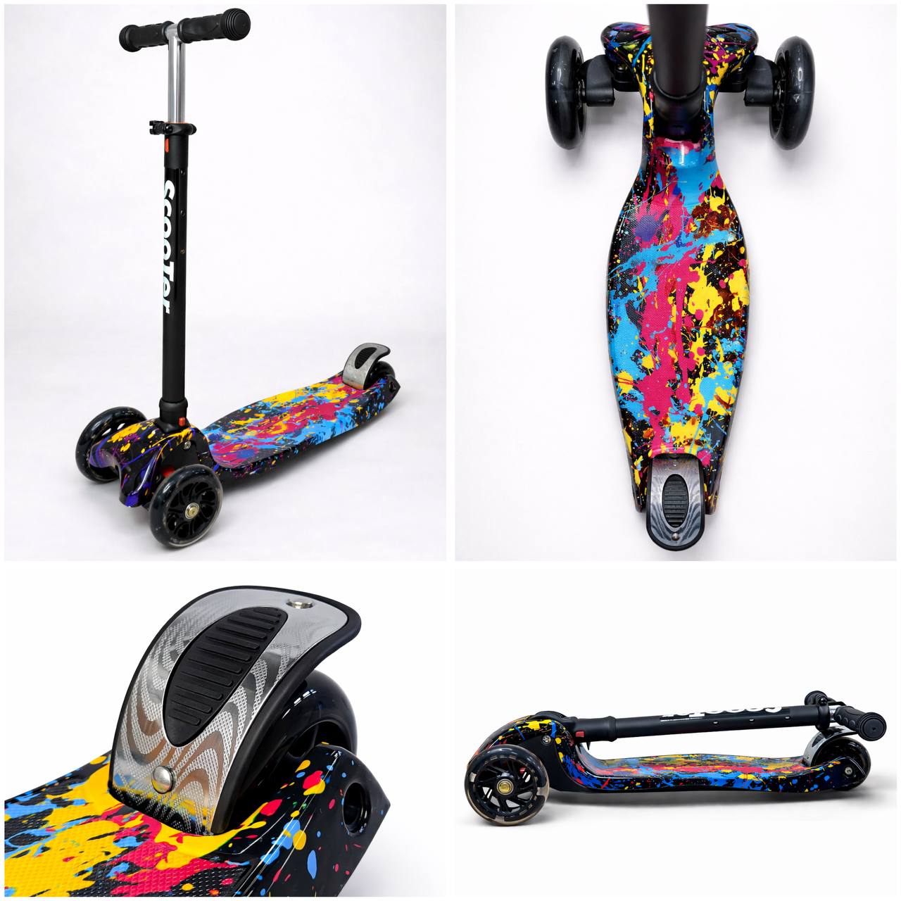 Самокат 3-х колесный складной S00225, принт «Краски»