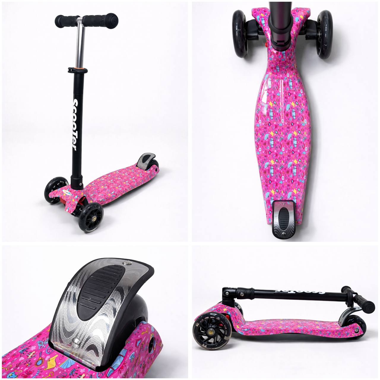 Самокат 3-х колесный складной S00098, принт «Ракушки»