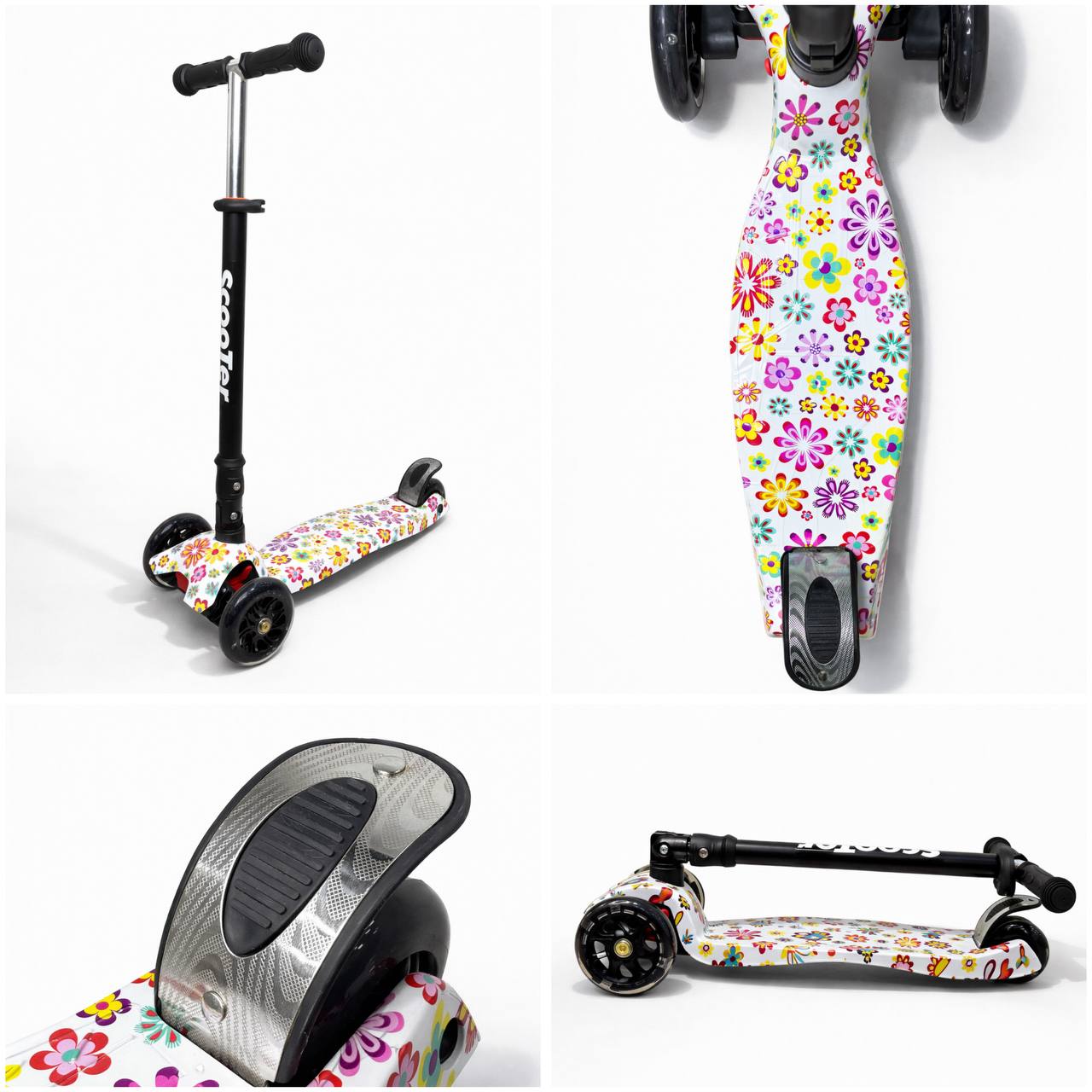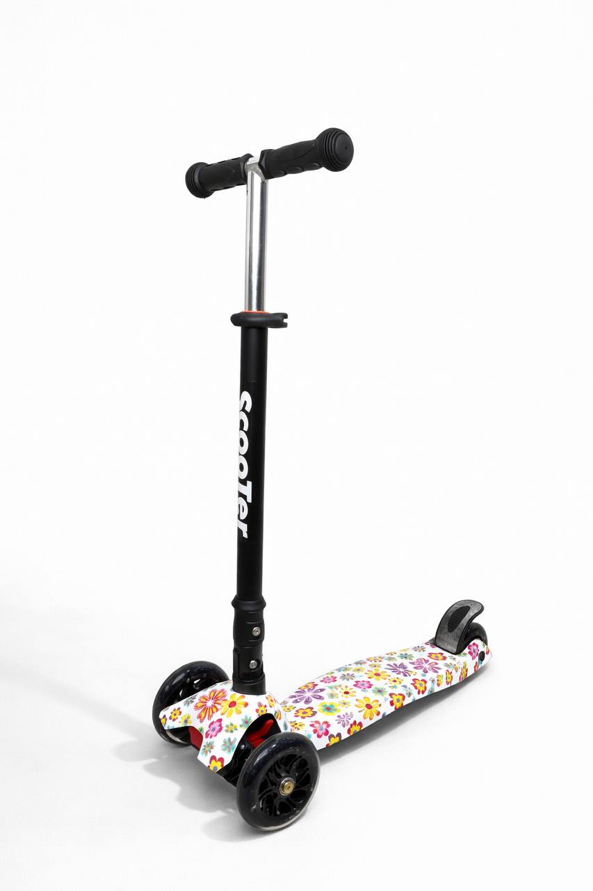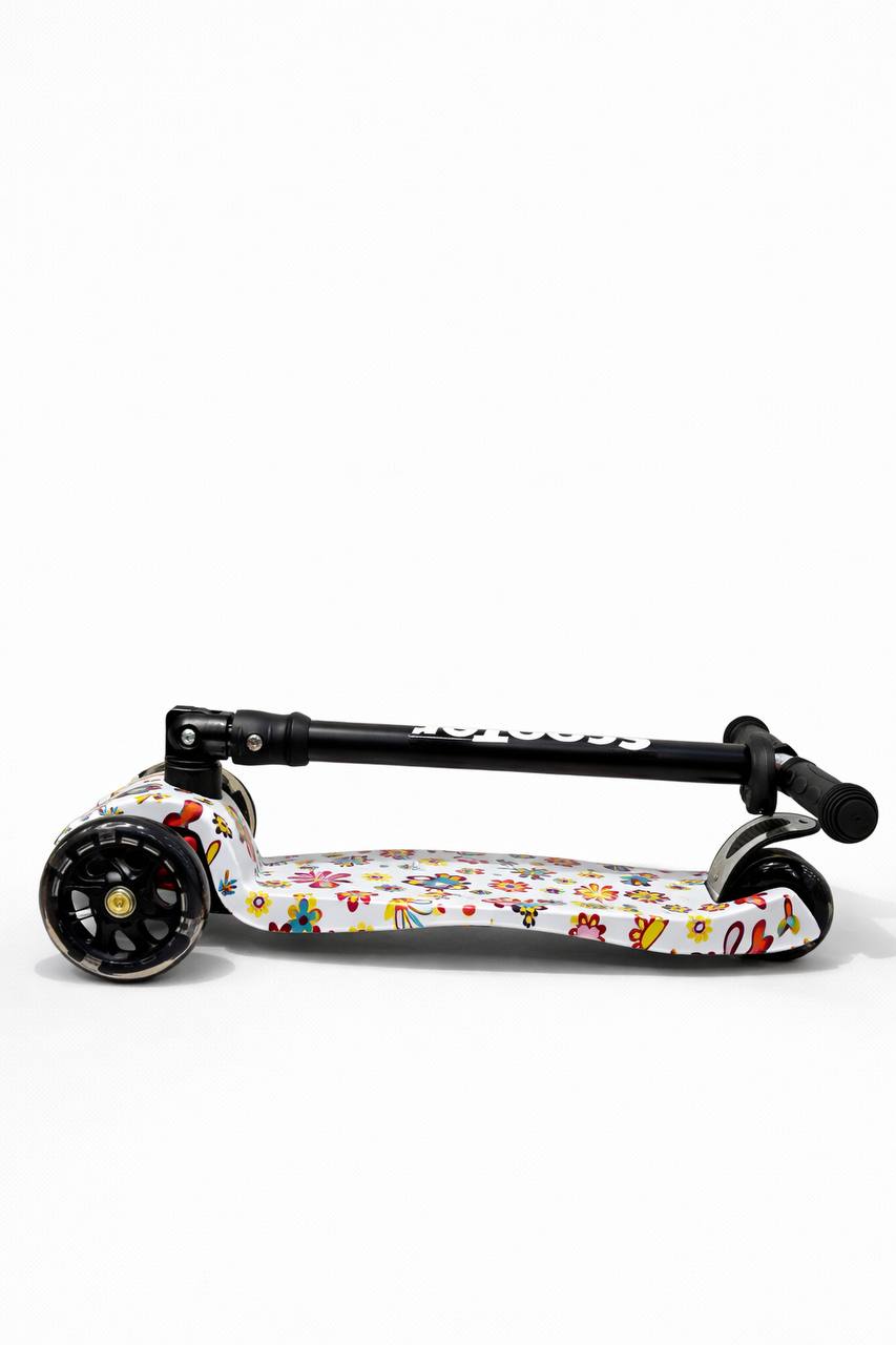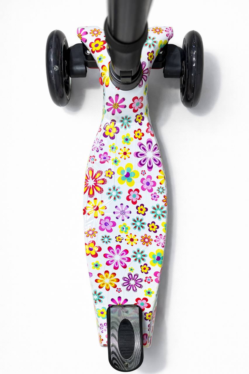 Самокат 3-х колесный складной S0098, принт «Цветы»