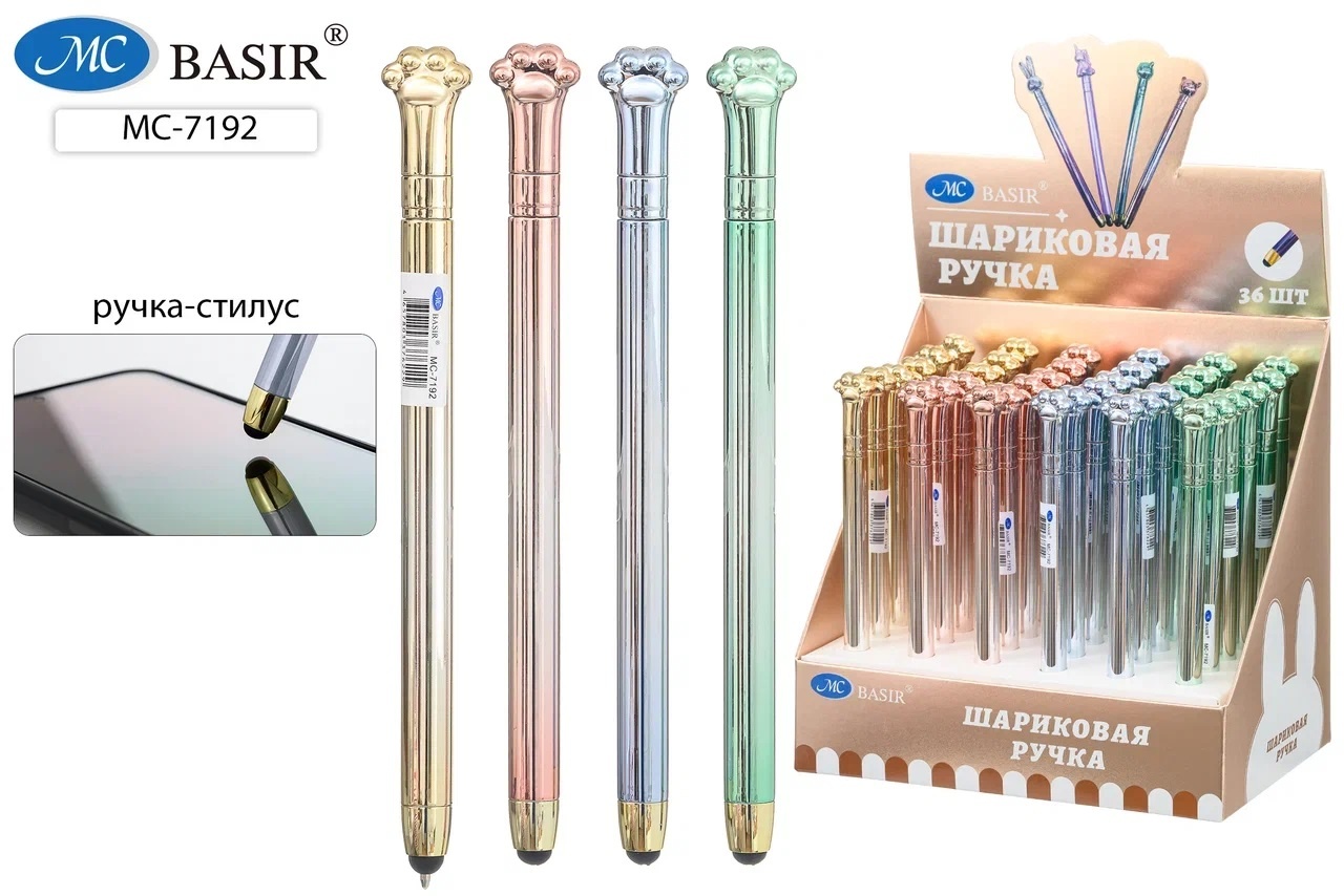 Шариковая ручка: с поворотным механизмом+стилус; цветной-металлик корпус /ассорти/, наконечник-ЛАПКА; цвет чернил синий.