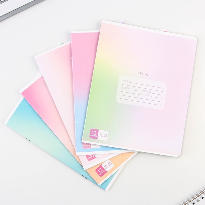 Тетрадь 12 листов в косую линейку”Школьные принадлежности,обложка мелованный картон,5 видов 9411720