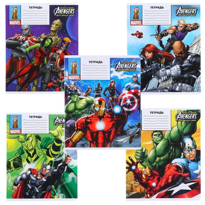 Тетрадь 18 листов, линейка, 5 видов МИКС, Мстители 9448876