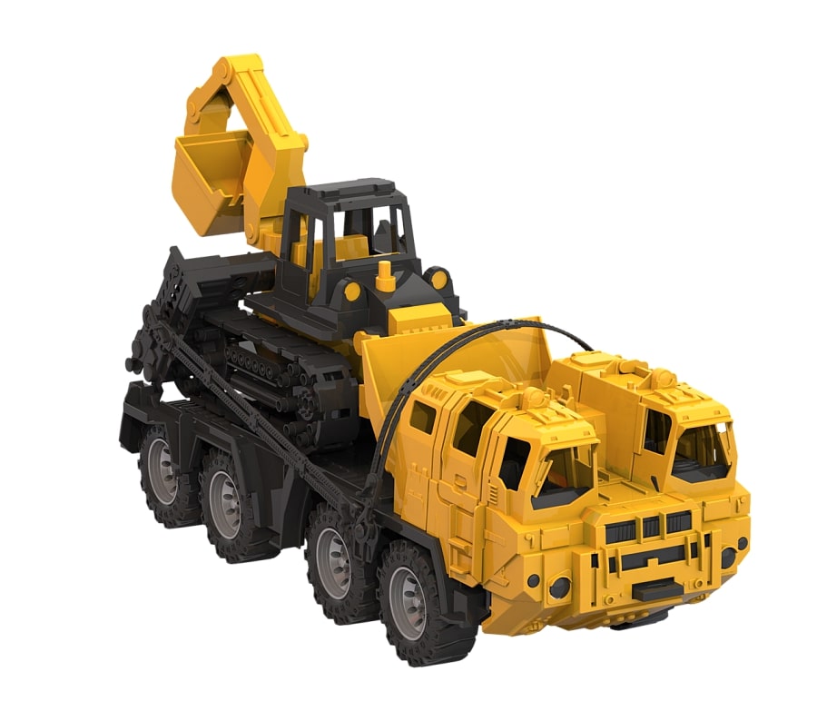 Раскладывающаяся аппарель четко рассчитана под гусеницы трактора. Трактор фиксируется за кабиной тягача, а сам трактор дополнительно крепится функциональной пластиковой лентой. Каждый тягач оснащен двумя кабинами, на открывающихся дверцах методом тампопечати нанесен рисунок, тягачи на четырех колесных парах на металлических осях прекрасно подходят для перевозки игрушек. Игрушка знакомит ребенка с различными видами техники, их особенностями и принципом действия, развивают мелкую моторику.