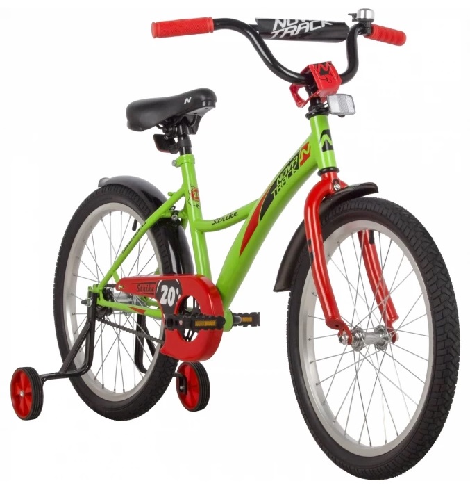 Велосипед «NOVATRACK 20″ STRIKE» с дополнительными колесами, цвет — зеленый.