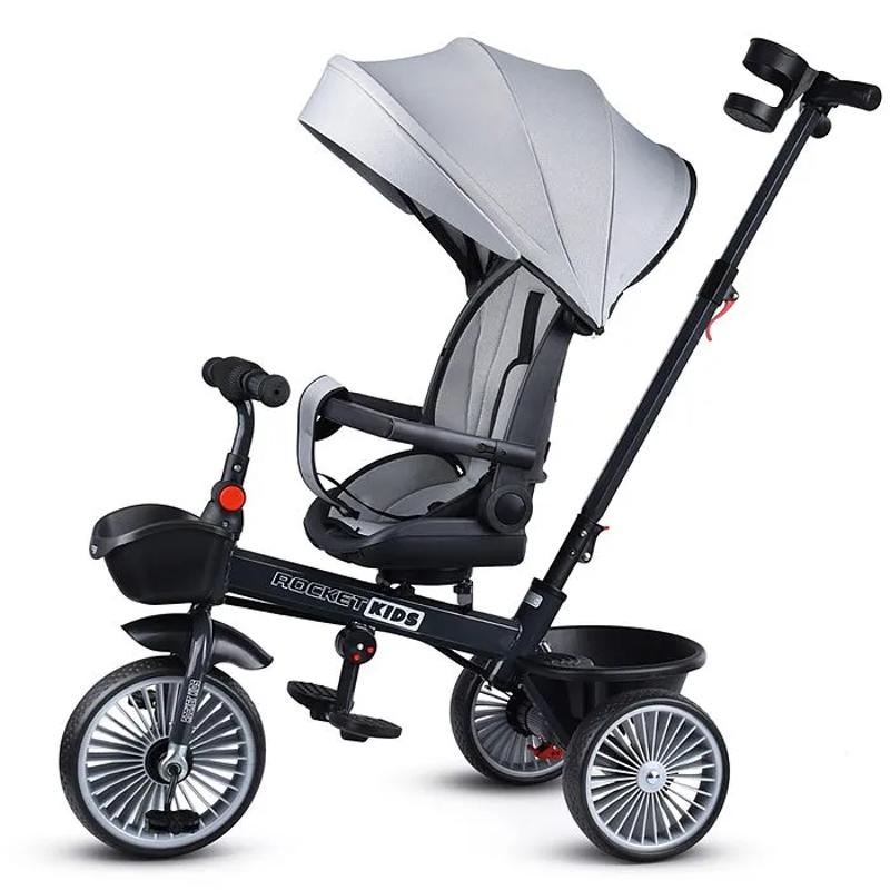 Велосипед трёхколёсный с родительской ручкой Rocket MLX-510-GR, серый