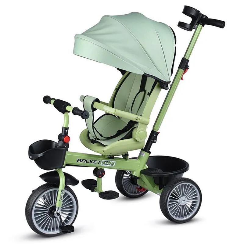 Велосипед трёхколёсный с родительской ручкой Rocket MLX-510-PS, зеленый