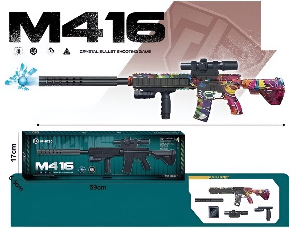 Современная винтовка с безопасными гелевыми пулями и эффектной подачей. Зарядка от аккумулятора, высокая скорострельность и реалистичный дизайн.