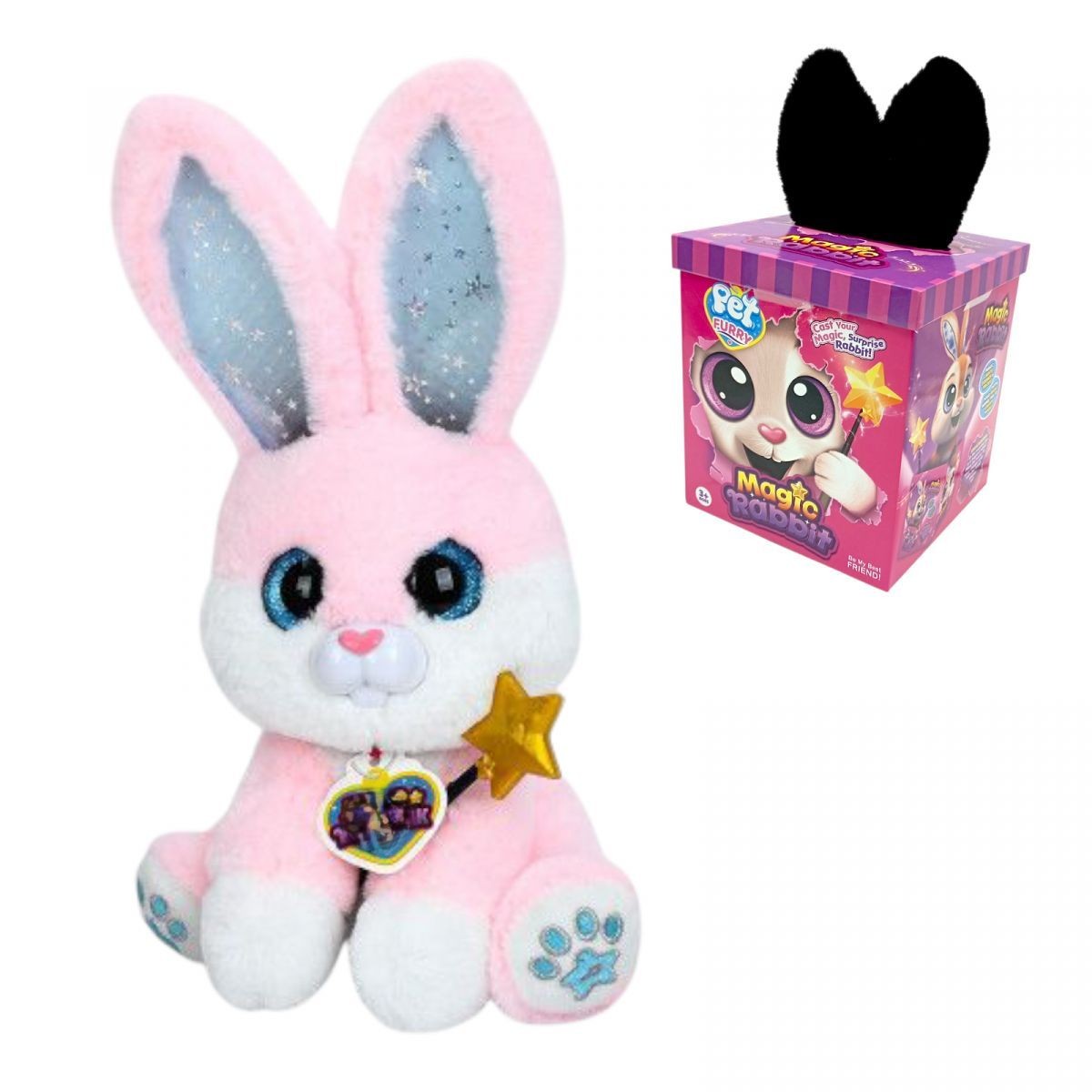 Интерактивная игрушка Магический зайчонок, сидячая, ушки подсвечиваются, песни на английском, воспроизводит мелодии, реагирует на ощупь палочки к носу, в коробке, Магический зайчонок – это интерактивная игрушка, которая завораживает с первого взгляда! Стоит только прикоснуться волшебной палочкой к его носику — и ушки меняют цвет, словно настоящее чудо оживает с одним лишь волшебством. Игрушка издает смешные звуки и проигрывает короткие мелодии, создавая атмосферу настоящей магии.